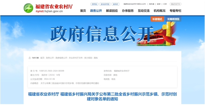 日前,福建省农业农村厅、福建省乡村振兴局发布通知,公布了第二批全省乡村振兴示范乡镇、示范村创建对象名单,其中高新区南屿镇双龙村、村镇办新洲村上榜。