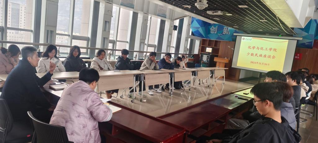于11月26日下午4点在科学楼c座七层连廊召开了少数民族学生座谈会,院党委书记吴志远、学生科郭禹老师及2024级全体少数民族学生参加了本次座谈会。