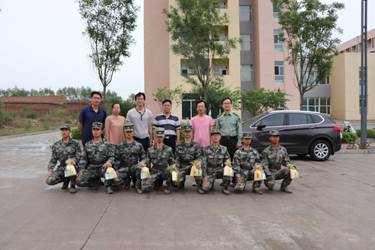 上午11点,院领导廖海洪书记,和在校的其他领导班子成员胡志勇副院长等,到达军训场地,召集教官们,做了讲话。首先,廖书记从宏观层面,让教官们再次认识到大学生军训的意义和必要性,并用实例说明了军训的核心思想。廖书记强调,他曾带过一位学生,是转业过来的,和他讲,经过参军,自己经历了生死考验,也通过这种考验,收获颇多。战友之间的深厚友谊,是弥足珍贵,是牢不可破的,铸就了自己坚忍不拔的意志力。其次,廖书记要求教官们严格要求学生,锻炼他们坚韧的意志,并希望通过这种锻炼,涌现出一批优秀的集体和优秀个人。最后,廖书记给教官们发放了慰问品,同时,让教官们有任何困难,及时和指导员老师、营长李云副书记反映。李云副书记强调让教官们在军训过程中,融入安全教育,特别是暑期的安全,并说今天查宿舍,就发现依然存在的极个别安全隐患。教官们表示会严格军训的纪律,做好合理安排,尽量让每位学生通过军训有所收获。慰问在欢乐的气氛中结束,教官们深受鼓舞,马上投入到紧张的军训中。