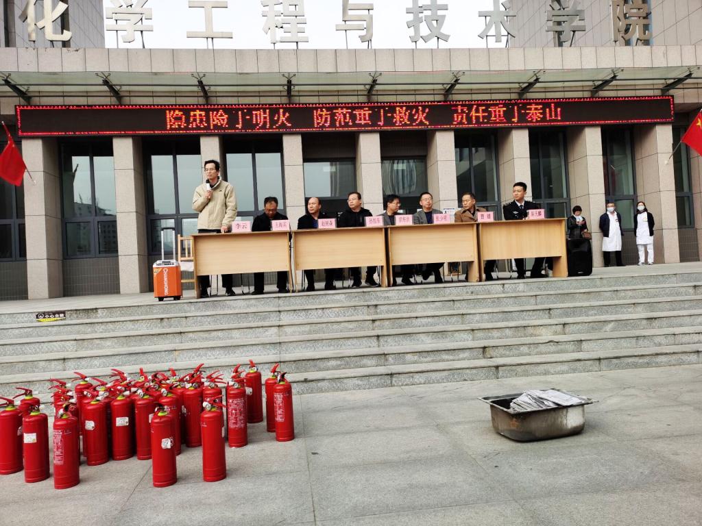为了增强学生的安全防火意识,提高同学们对火灾的警惕性。2020年11月13日下午四点,环境与安全工程学院化学工程与技术学院联合举办了主题为“关注消防,生命至上”的安全教育培训及消防安全演练。环境与安全工程学院党委书记赵树森、副书记张少明,副院长曹雄,化学工程与技术学院党委书记廖海洪、副书记李云,副院长王海宾,山西安康社会工作服务中心教官陈天麟,校医院主任医师孙小林,保卫处处长孙旭东出席本次培训。环境与安全工程学院化学工程与技术学院全体学生共同参加演练