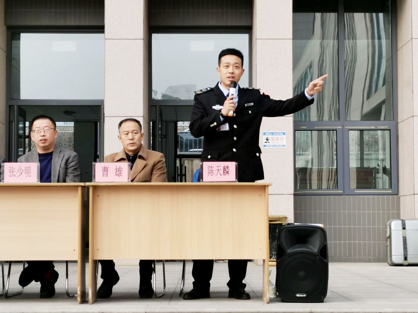 下午四点,各安全员就位,开始消防演练。警报响起的瞬间,同学们迅速有序地从宿舍楼撤离,向科学楼门前空地疏散。集合完毕,各班负责人清点人数。随后李云副书记介绍了参加本次演练的领导及教官。教官陈天麟针对全体师生演练过程进行点评,校医院主任医师孙小林为学生讲解涉及火灾现场的急救知识与操作,并请学生代表尝试施救。官陈天麟向大家普及了消防知识教授了灭火器的使用方法,学生代表动手实践,进行了灭火器的使用。最后参与演练的同学有序离场。