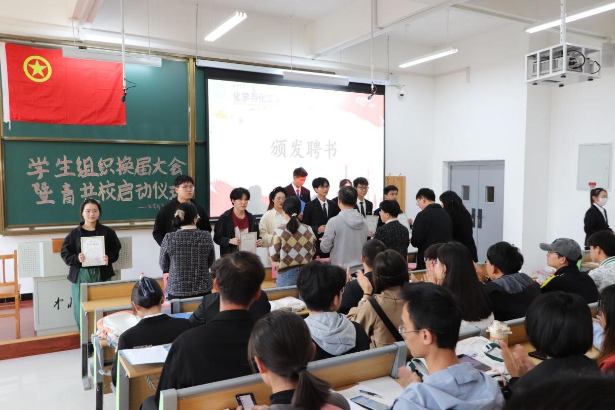 在庄严肃穆的国歌声中,本次大会正式开始。院团委郭达老师发表讲话,充分肯定了上学年学生组织的工作成果,对新一届学生干部就今后的工作做出了详细要求并表达了他的期望。会上,院团委副书记及学生会主席团成员,进行了2022-2023年各学生组织工作计划的汇报。团委副书记杨承铭条理清晰地向大家汇报了过去一学年里团委的总体工作规划及所获得的工作成果,并围绕职位心得和工作心得两方面展开,向大家分享了他的工作经验。学生服务中心主任刘钰萌分别从学生的心理、学习、就业等方面出发,详细充分地分析了学生组织工作的重要意义。分科协副主席张嘉琦则对上学年的分科协工作中的不足进行了多角度分析,并对新一届学生干部提出殷切期望。在热烈的掌声中,各位老师为上一任优秀学生干部颁发聘书,并由郭达老师宣读了新一任学生干部的任命名单。