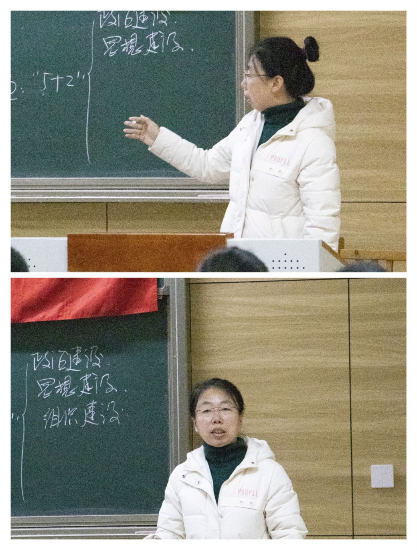 马克思主义学院庞旭瑞老师则讲述了以“新时代党的建设”为主题的指导方针、根本原则、主线展开和总体布局。重点讲述了总体布局中的“5+2”方针。“5”指的是政治建设,思想建设,组织建设,作风建设,纪律建设,其中以政治建设为首位。“2”指的是制度建设和反腐败。精辟论述了政治建设事关方向、思想建设奠定基础、组织建设筑牢根基、作风建设塑造形象、纪律建设伴随成长、制度建设贯彻始终、反腐斗争展现自信7个方面的重要作用,引用故事、案例详细阐述了加强新时代党的建设的重大意义和丰富内涵。
