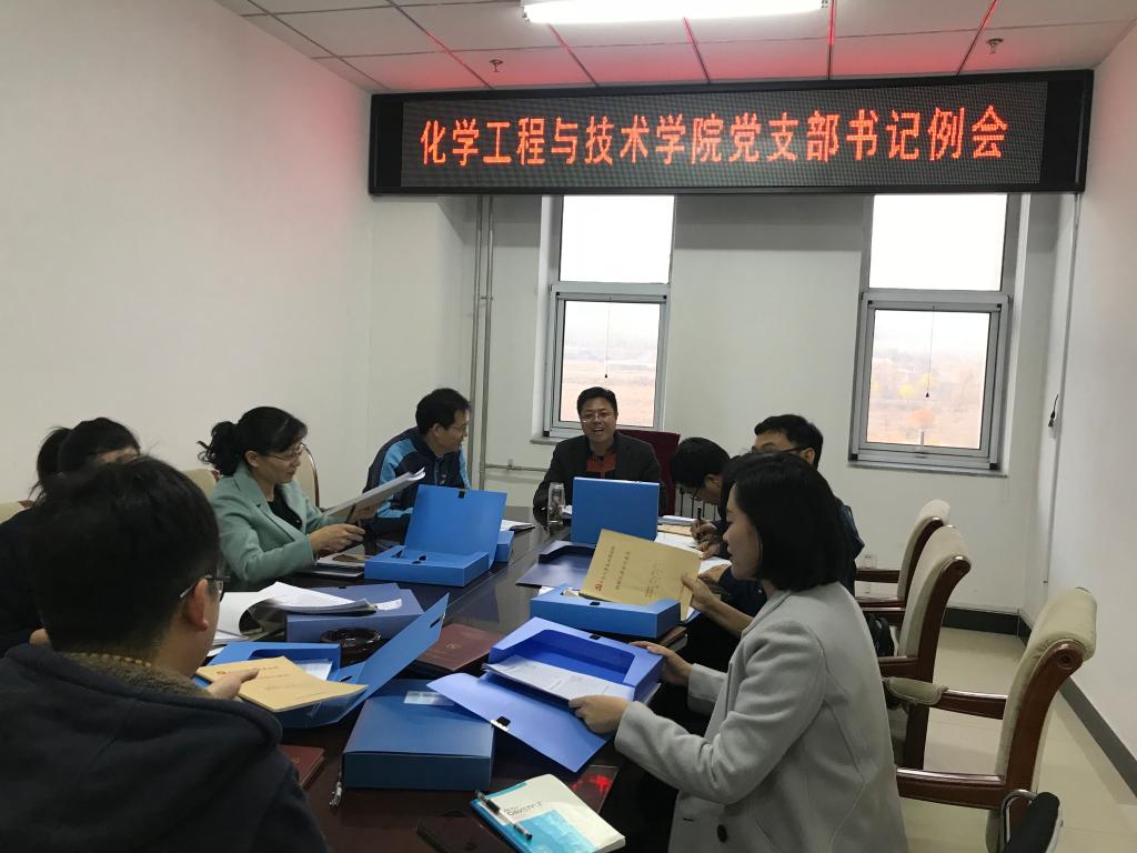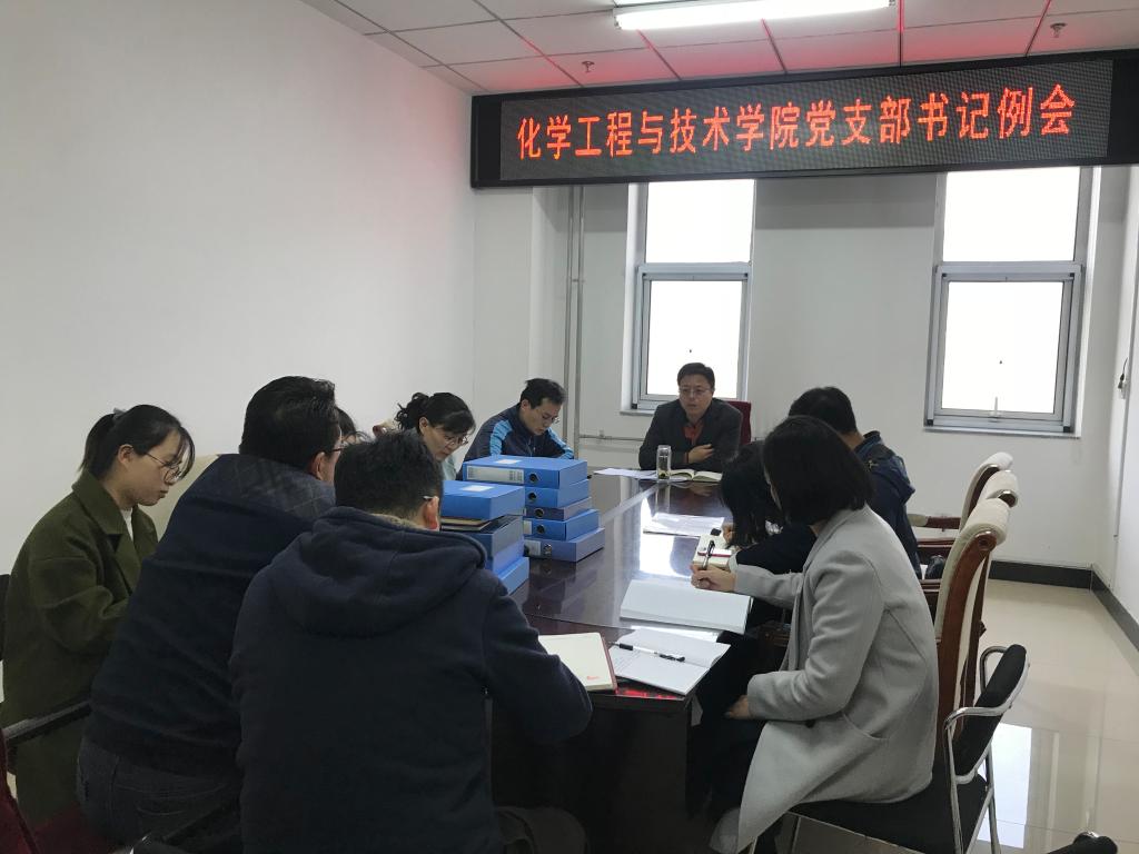 2018年11月01日,化学工程与技术学院在科学楼714召开了学院党支部书记例会,会议由廖海洪书记主持,党委副书记李云及全体党支部书记参会。
