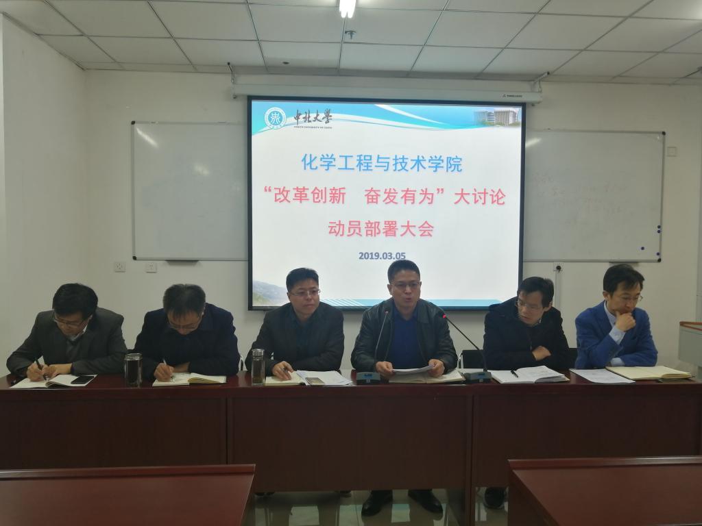 为深入学习贯彻习近平总书记在庆祝改革开放40周年大会上的重要讲话精神,落实省委《关于开展“改革创新、奋发有为”大讨论的实施方案》精神,进一步推动学院“改革创新,奋发有为”大讨论活动的开展,2019年3月5日,学院召开了“改革创新,奋发有为”大讨论活动动员部署会议,会议由院长祁贵生同志主持,领导班子成员及全院教职工参加会议。
