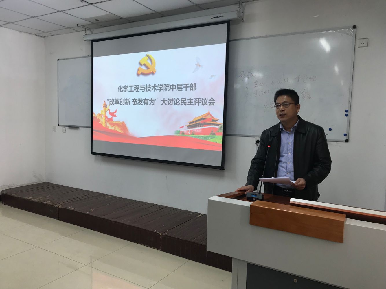 党员领导干部和师生员工参与“改革创新、奋发有为”大讨论的积极性主动性,学院前期进行了大讨论动员部署、召开党支部书记培训会、制定大讨论学习资料、举办“大讨论”学习报告会,提高学院师生对大讨论的认识。此外,学院领导班子于3月20日前往太原理工大学进行对标一流调研,领导班子结合本单位、本岗位和个人实际,对标一流、解放思想、勇于改革、善于创新,进行查摆问题、剖析原因。按照校党委组织部《关于做好中层干部大讨论工作的通知》要求,学院于2019年3月22日,在科学楼206召开中层干部大讨论工作会议,会议由院党委书记廖海洪主持,全院教职工和学生代表参会,。