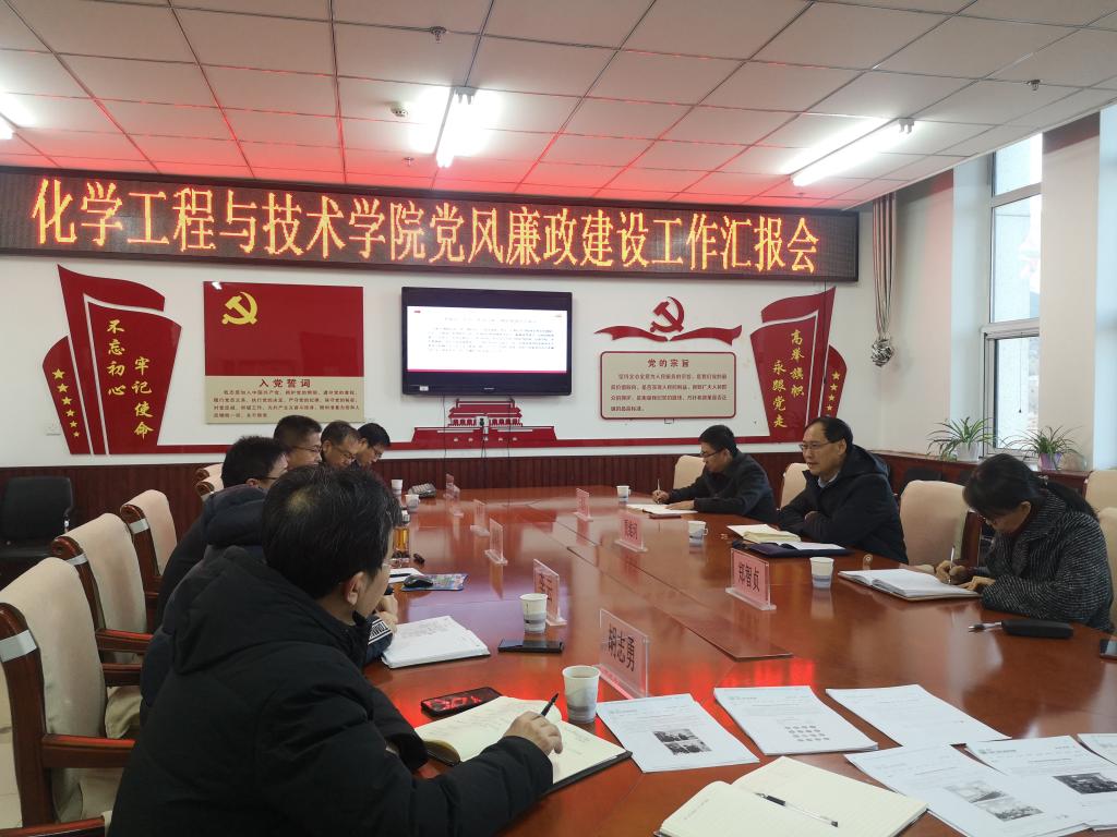 2020年12月23日下午,校纪委书记贾维河、纪委副书记郑智贞、纪委办副主任王建军一行莅临化学工程与技术学院调研指导党风廉政建设工作,学院全体院领导、党委委员参加了调研座谈会。