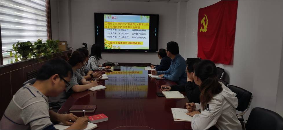 党支部书记高璟讲到,学习改革开放新时期中国走过的这40多年光辉历程,要正确认识1978年12月18日至22日中共十一届三中全会召开的重要意义,会议确立了以经济建设为中心的基本国策,拉开了中国改革开放大幕,人们在精神生活和物质生活方面都有了质的提高,从根本上改变了中华民族的前途命运,也改变了世界发展格局,为推动人类共同发展作出了应有贡献。全体党员们要认识到这是中国共产党人和中国人民努力的结果。大家要知史爱党、知史爱国,珍惜今天幸福生活,牢记历史、铭记历史,让历史这部教科书在实际立德树人和教书育人工作中发挥重要作用。