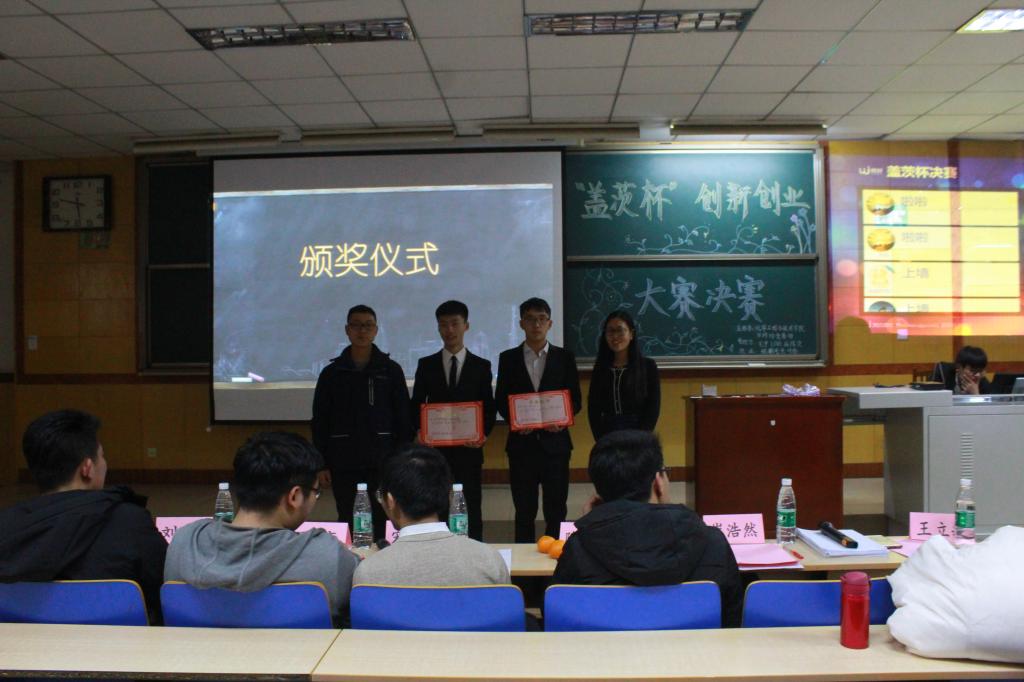本次比赛有8组参赛选手。各组选手精心准备,项目内容涉及到了环保、民生等方面。他们通过答辩、PPT等形式充分的展示了自己项目的优势。之后评委会根据市场、民生等需求对选手进行提问并打分。各组选手优秀的作品、评委专业的提问以及精彩绝伦的节目表演使比赛逐渐热闹起来。8组参赛选手展示完毕后,崔浩然老师对选手们的作品做出了点评。经过激烈的角逐,获奖名单在比赛尾声浮出了水面,随后由评委为获奖选手颁奖。比赛最后,王立敏老师对本次活动做出总结,对大学生创新创业的发展势头给予了肯定。