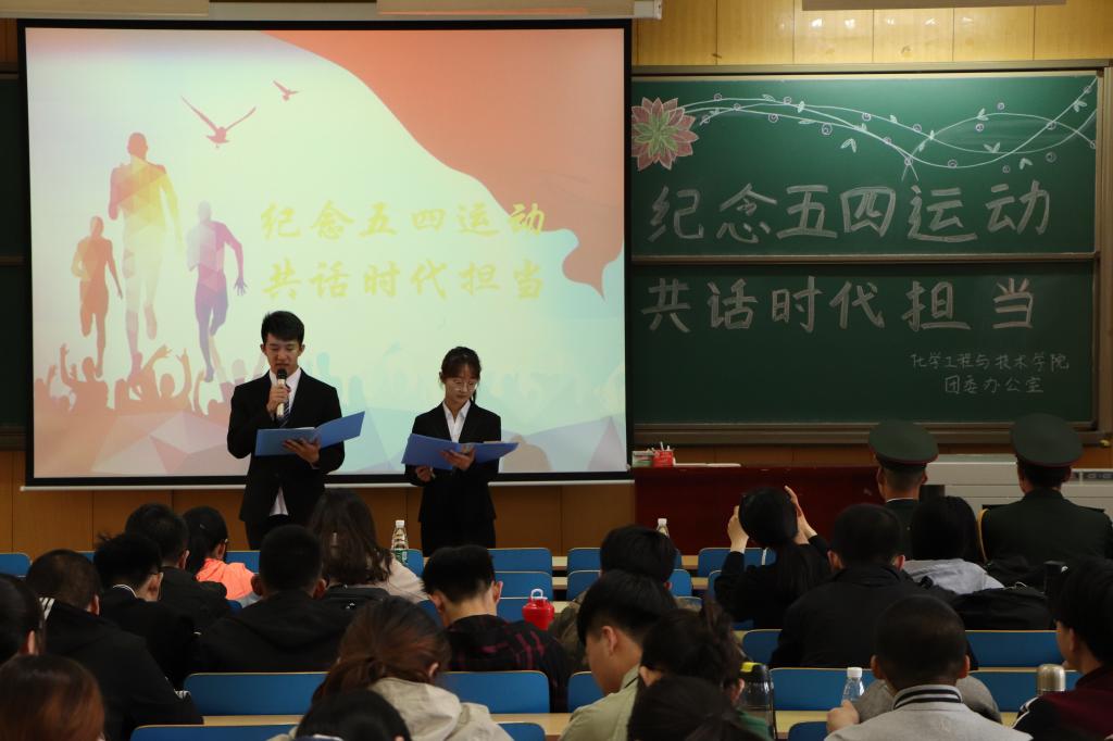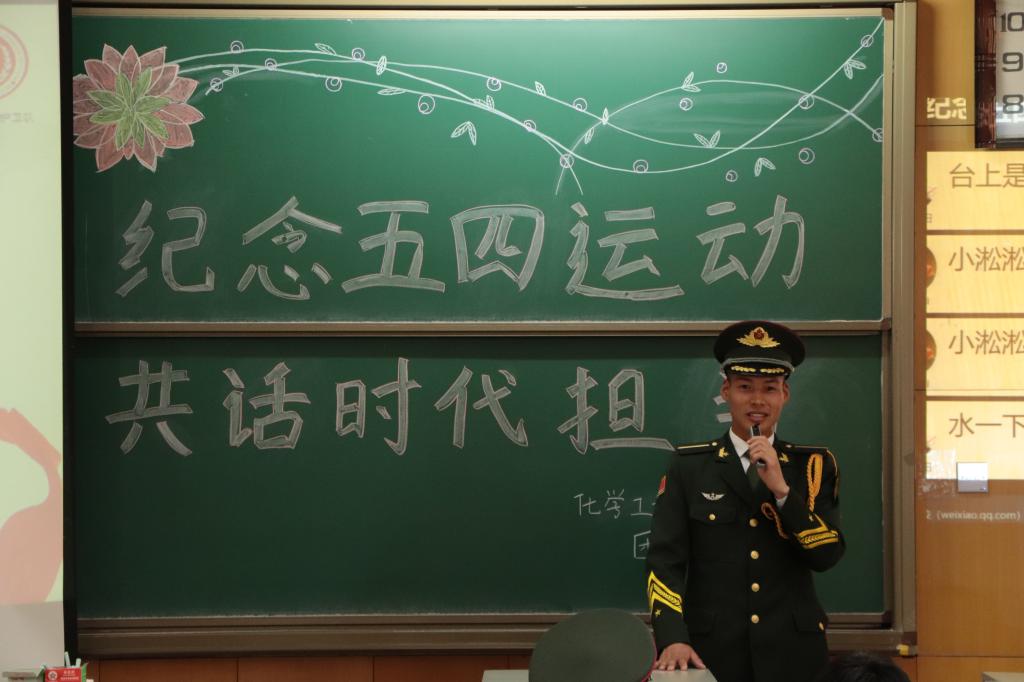 2019年恰逢五四运动100周年,为了纪念五四运动,让当代青年积极响应入伍号召,肩负起时代重任,化学工程与技术学院团委办公室于2019414日下午三点在11409教室开展了名为“纪念五四运动,共话时代担当”的主题讲座。出席本次讲座的嘉宾有国旗护卫队队长梁桂海,国旗护卫队胡梦坤、王钦同学,还有两位退伍军人文蕊鑫和冯龙杰。