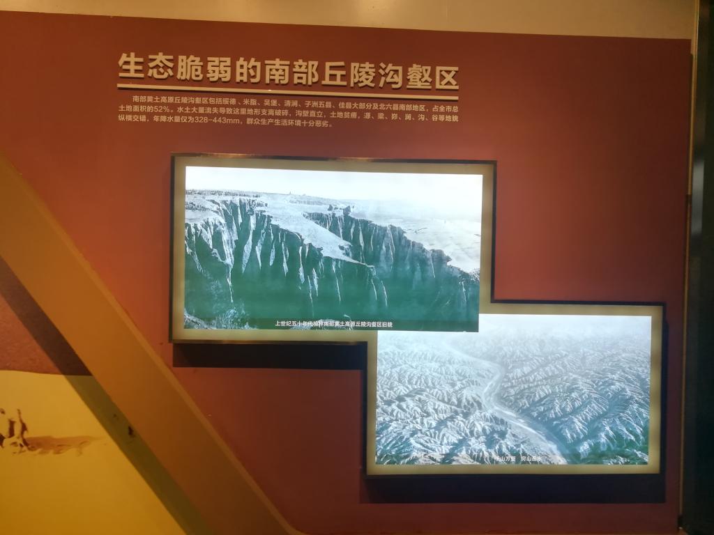 在治沙建设部分,我们详细地了解了科学治沙历程。在风沙肆虐的北部风沙草滩区,人们在艰难探索中进军沙漠,方格固沙,飞播造林,引水拉沙造良田等先进的治沙方法,使榆林展现出林带密集,良田整齐的绿洲景象。三北防护林工程,退耕还林工程,天然林保护工程翻开了塞上榆林的另一面美丽风光。
