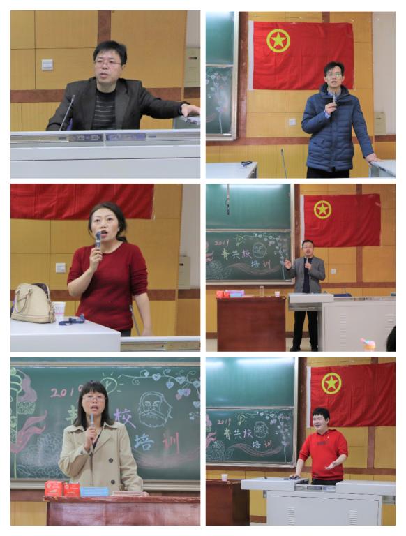 张少明老师以“知行合一,奋斗的青春最美丽”为主题,讲述了习近平总书记15岁时在梁家河成为一名知青的点点滴滴,“只有奋斗的人生才称得上幸福的人生”,让我们在中北遇到更好的自己。常开霞老师用现在的实时热点“香港问题”从四方面进行了精彩的演讲,让我们了解到问题的缘起、深层次的矛盾、香港问题的本质以及青年学生的使命担当;常开霞老师呼吁我们要懂得担当,告诉我们“你若光明,中国将不再黑暗”的道理。李云老师围绕“高校学生干部能力与素质的培养”,给大家讲解了学生干部工作的一般流程、现代运作模式以及工作方法,使大家进一步明确了自己作为学生干部的定位:“青春逢盛世,奋斗正当时”。优秀学长王宇以习近平主席在北大座谈会上提到“勤学,修德,明辨,笃信”的八字真经为例,结合自身讲述学生干部的出发点,任务与方向。刘莉莉老师以中美贸易为中心,用中美贸易战来阐述国家大事与大学生之间的关系,引出当代大学生应踏实学业,专注专业,创造自身的人生价值将个人与国家紧密相连。廖海洪老师从十九届四中全会的内容出发,与历史结合阐述六大理论亮点,与到场班委共同学习十九届四中全会精神。