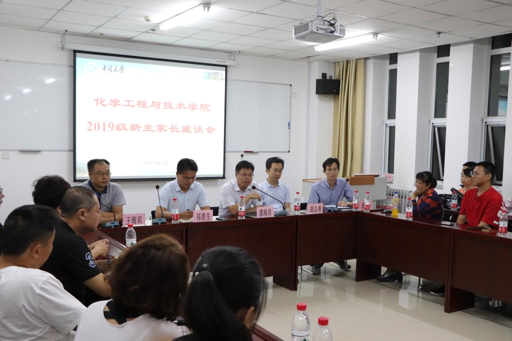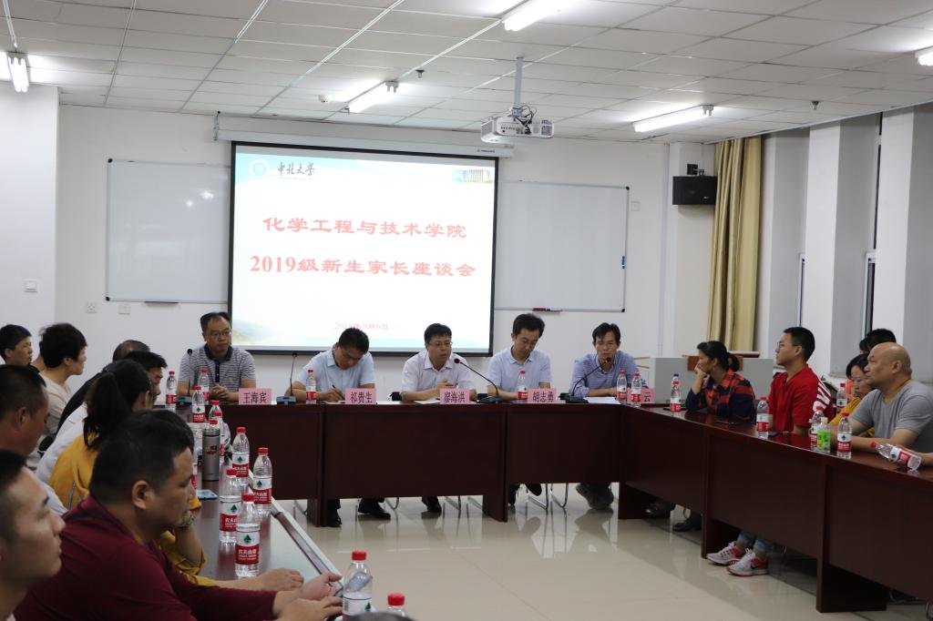 2019年9月6日晚7点半,化学工程与技术学院2019级新生家长座谈会正式在科学楼206召开。院党委书记廖海洪、院长祁贵生、院党委副书记李云、科研副院长胡志勇、教学副院长王海宾、各专业负责人、学生科、团委老师、各班新生班主任以及新生家长参加了本次会议。
