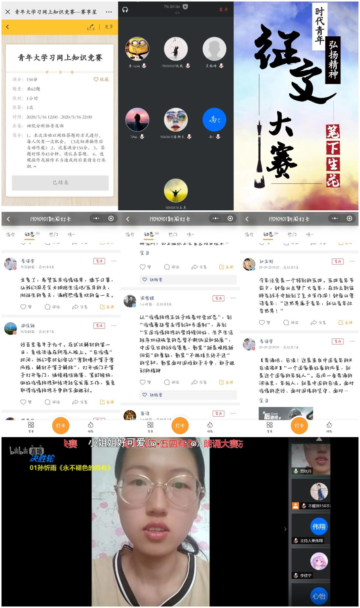 在疫情“外防输入,内防反弹”特殊时期,结合疫情防控和青年特点,为展现新时代团员青年的精神风貌,用青春共筑防疫长城。5月11日至14日期间举办了“时代青年,弘扬精神”五四主题征文比赛,选手郭杰群以一首《浣溪沙·青年奋强》荣获一等奖,竞展青春风采。5月15日举办了“青春战疫,五四有你”主题朗诵比赛,参赛者用声音传递爱与祝福,在语句中表达爱与信念。同日组织进行了团支书和优秀团员宣讲会,宣讲人带领参会人员重观抗疫之路,感防疫全国一盘棋,念总书记殷殷希望,鼓舞团员更加奋发进取。5月16日举办了“青年大学习知识竞赛”线上答题活动,av影片
