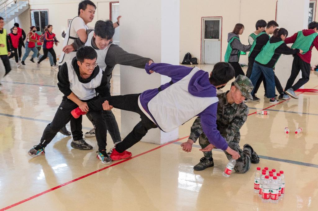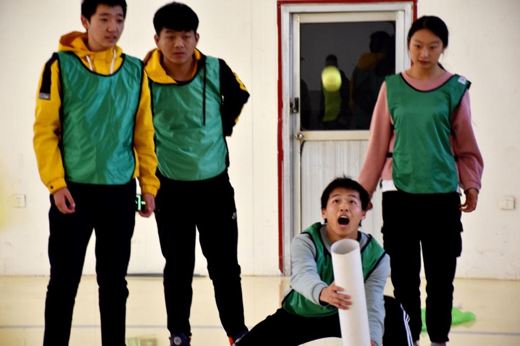 主教练在简要介绍此次活动的目的及活动背景后,将同学们分成两个部分共八个小组分别进行团建活动。各小组进讨论后,分别展示了自己小组别出心裁的队名、队歌、队形。随后,同学们在教练的带领下进行了丰富的团建活动。雷区取水、极速60秒、沙场点兵,这些活动考验着同学们的沟通与合作的能力。每个队伍发挥着团结、专注、坚持、不服输的精神,各组员也为了共同的目标完成着各自的“任务”,同时在每个项目结束后穿插了一些总结,让同学们体会到团结的强大力量。