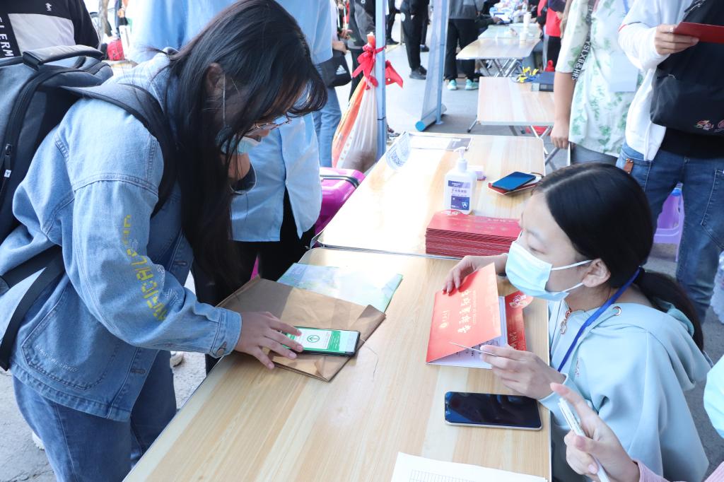 迎新志愿者们主动帮助新生拎行李,热情引导新生悉心为他们介绍校园环境。接待处的志愿者们耐心详细解答新生和家长的各项问题。人头攒动,井然有序。在学长学姐的帮助下,新生们顺利完成报到志愿者们的热情也让原本拘谨的新生开始尝试融入学院。