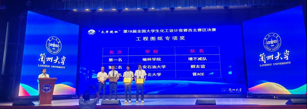 “晋ACE”团队凭借过硬的化工设计实力、出色的现场答辩、精彩的团队协作及现场应变能力,在西北赛区总决赛中以优异成绩获得西北赛区特等奖,同时获得优秀“工程图纸”与优秀“设计文档”专项奖,并将代表西北赛区到大连理工大学参加全国总决赛。
