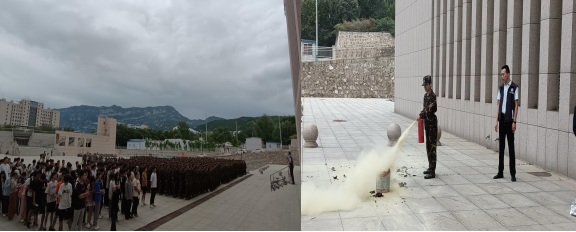 消防安全培训结束后,学院师生进行消防安全应急演练,科学楼C座、学生宿舍楼分别拉响警报,学院师生快速转移至科学楼外广场。张教官为师生详细讲解了应急逃生注意事项,并对干粉灭火器使用方法进行了详细讲解。师生现场进行了灭火器操作,熟练掌握了灭火器使用要领,进一步提升了消防安全技能。