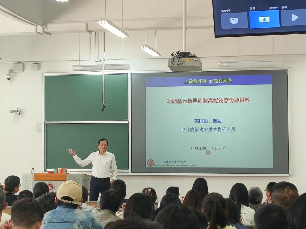 于2025年4月29日下午15:00在17101H举办了题为“功能基元指导创新高能钝感含能材料”的华彩讲坛,本次讲座由中国科学院福建物质结构研究所研究员郭国聪主讲,学院科研院长赵慧鹏主持,学院师生参加了此次讲座。