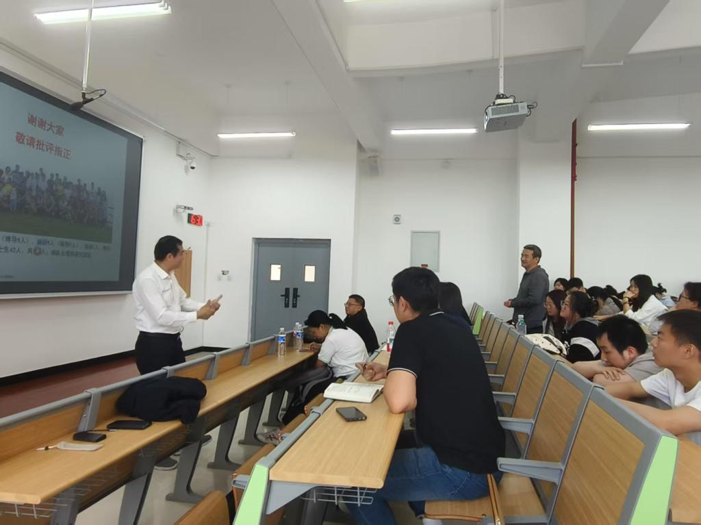 郭老师指出,长期以来,传统含能材料始终面临能量与安全性难以平衡的困境,而功能基元理论恰似一把 “金钥匙”,为材料研发指明方向 —— 通过指导分子结构设计优化,可精准调控含能材料的性能,实现能量释放与安全稳定的有机统一。郭老师以幽默风趣的语言,深入浅出地讲解了功能基元的基本原理及应用场景,阐述功能基元的核心概念,将其与材料设计紧密结合,系统论述了功能基元在材料设计中的关键作用,并讲述了如何创制高能钝感含能材料设计。他巧妙运用生动直观的图表,配合凝练精准的语言,将前沿的电子结构晶体学新方法抽丝剥茧,让晦涩的理论知识变得清晰易懂。郭老师的前沿研究成果与独特见解,为在场师生打开了高能钝感含能材料研究的全新视野,赢得了阵阵热烈掌声。