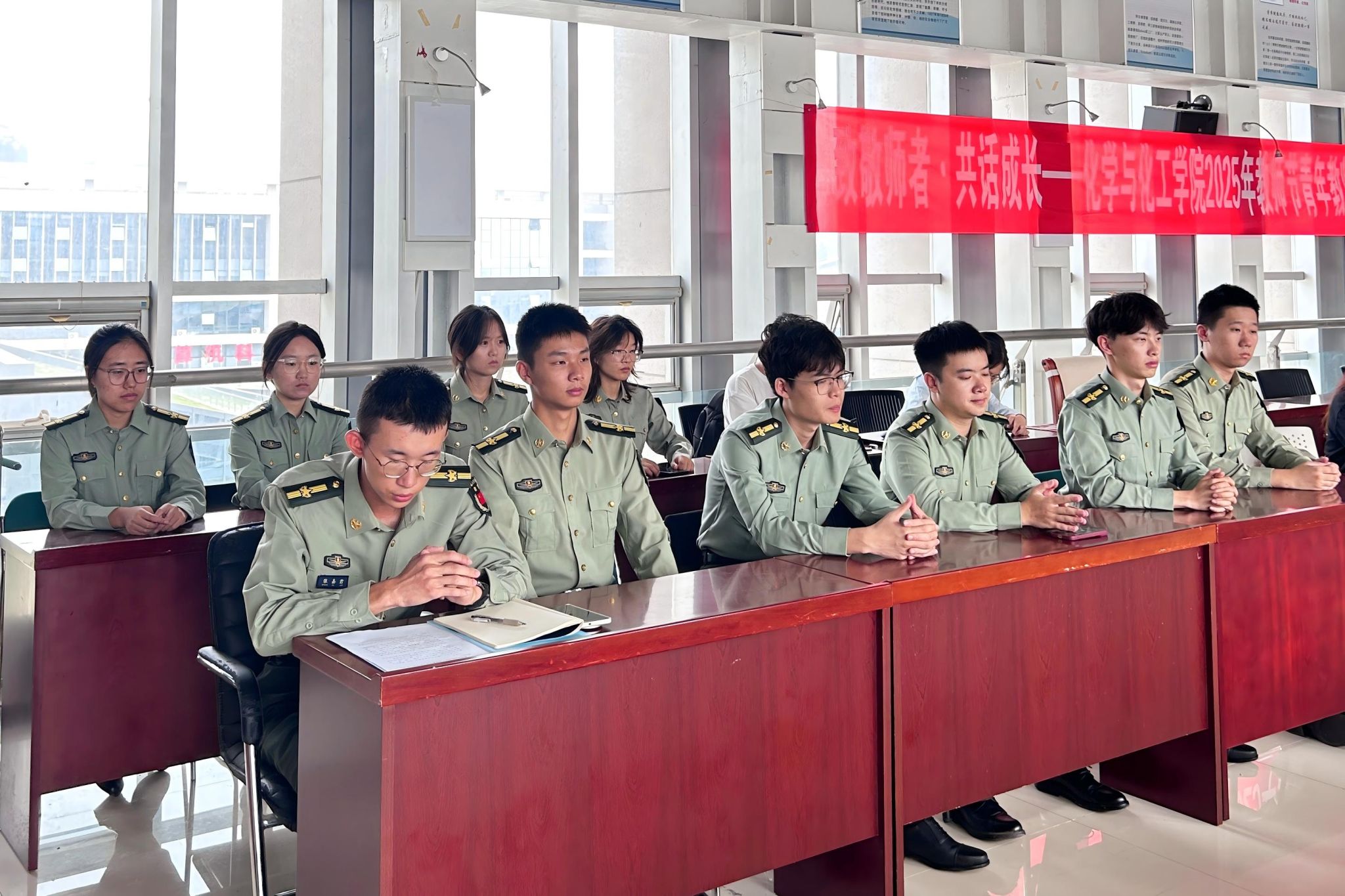 在科学楼C座7层连廊举行2025级新生军训教官见面会。学院党委副书记蔡文涛、四营全体教官、2025级新生班主任及朋辈辅导员共同参会,会议由学生科科长赵芸芳主持。