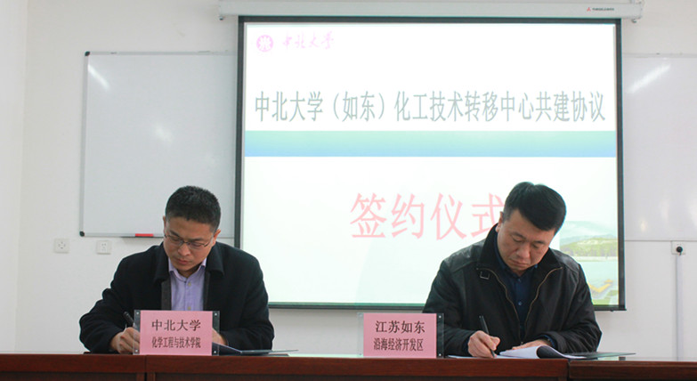 (如东)化工技术转移中心”共建协议。如东县委常委、沿海经济开发区党工委书记许金标,如东沿海经济开发区党工委委员、洋口镇党委副书记、镇长范于松及开发区企业代表、化学工程与技术学院院长祁贵生、副院长胡志勇及学院教师代表出席洽谈会,院长祁贵生主持会议。