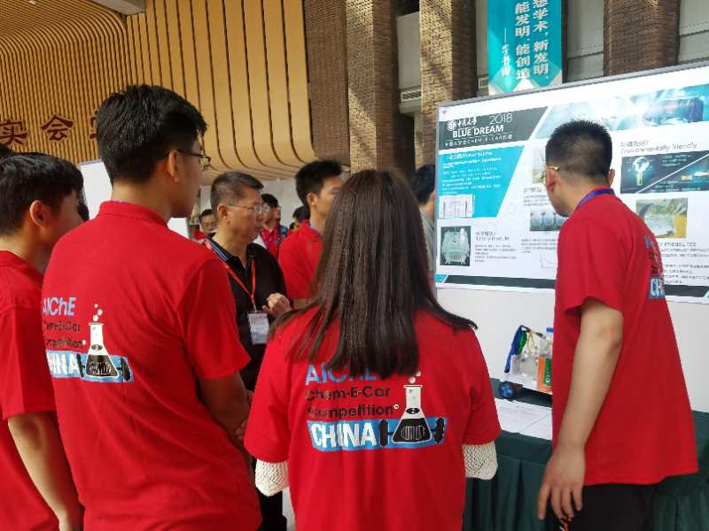 Chem-E-Car(Chemical Engineering Car)竞赛由美国化学工程师学会(American Institute of Chemical Engineers, AIChE)发起主办,是一项针对大学生运用化学工程技能并进行跨学科应用的国际竞赛,自1999年第一次在美国举办至今,吸引了全球众多高校的积极参与,比赛队伍需经过严格选拔,最终入围年度竞赛。该竞赛分为海报竞赛与性能竞赛部分。海报竞赛是通过海报形式描述化工车的动力来源、小车特点、环保及安全等。化工车性能竞赛则是考察精准控制化学反应的能力。比赛前一小时告知化工车的载重量和确切的行驶距离,然后由其设计合理的化学反应和反应物理量,使小车在2分钟内行驶一定距离后自动停止。比赛在一个扇形区域内进行,起跑时小车前端接触起跑线,小车停在最靠近终线者最终获得胜利(以车最前端为准),出界(即离开扇形区域)计零分。