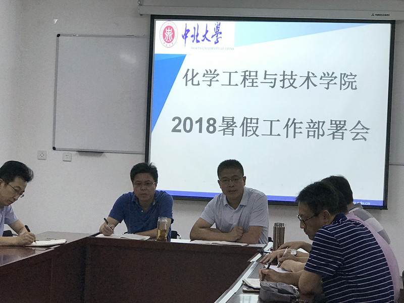 7月10日下午,化学工程与技术学院在科学楼206召开2018年暑假工作部署会,学院领导、学科部主任、副主任、各科室科长出席了会议,会议由院长祁贵生主持。