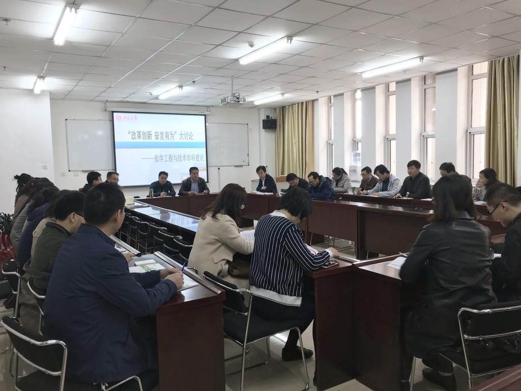 在全校上下深入开展“改革创新 奋发有为”大讨论之际,化学工程与技术学院于3月18日上午在科学楼206会议室,召开了化学工程与技术学科建设研讨会。会议由院长祁贵生主持,学院领导班子及学科全体研究生导师参加了讨论。