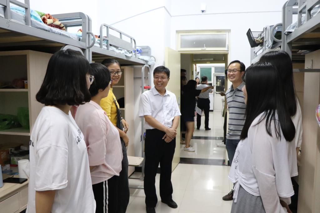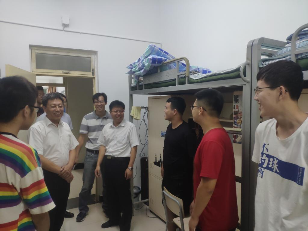 关注新生生活,传递温暖真情。为了了解新生们的生活状况,让新生们尽快适应新的环境,2019年9月7日晚上,av影片 副校长潘晋孝、化学工程与技术学院党委书记廖海洪、党委副书记李云、副院长王海宾、胡志勇、焦纬洲,新生班主任等走访慰问了2019级新生。