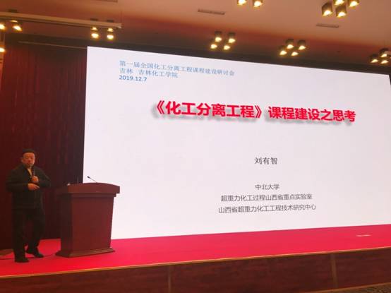 教授刘有智在研讨会上作了题为“《化工分离工程》课程建设之思考”主旨报告,明确了化工分离工程课程的地位和作用,并就化工分离工程课程建设的方向、目标和路径进行了详细阐述。