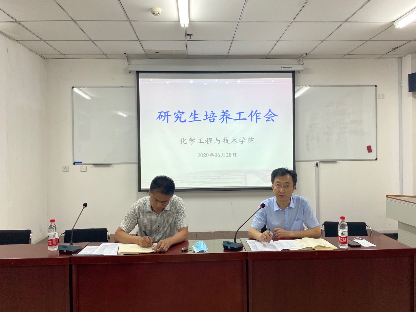 为进一步提高研究生培养质量,切实把研究生教育、培养、安全等方面的工作落实到位,特别是疫情期间假期留校研究生的实验室安全防护工作,化学工程与技术学院于6月28日下午在科学楼C座206召开全院研究生导师工作会议。院长祁贵生和科研院长胡志勇参加此次会议。