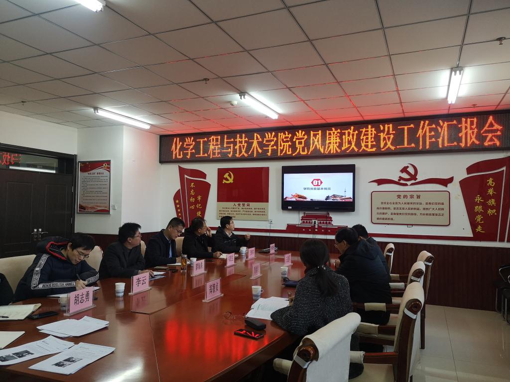 2020年12月23日下午,校纪委书记贾维河、纪委副书记郑智贞、纪委办副主任王建军一行莅临化学工程与技术学院调研指导党风廉政建设工作,学院全体院领导、党委委员参加了调研座谈会。