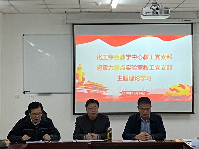 2020年12月24日上午9点,化学工程与技术学院化工综合教学中心教工党支部党支部和超重力重点实验室教工党支部在化学工程与技术学院科学楼206会议室,开展了深入学习贯彻党的十九届五中全会精神的主题理论学习活动,邀请学院党委委员、院长祁贵生给支部党员们上党课。党支部联系院领导、院党委书记廖海洪参加了本次会议。会议由化工综合教学中心教工党支部书记焦纬洲副院长主持。