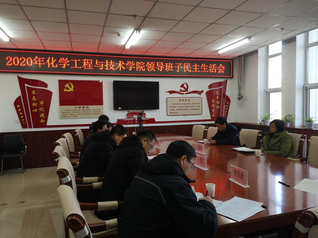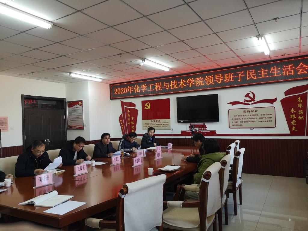 根据校党委《关于召开2020年度中层党员领导干部民主生活会的通知》的要求,2021116日上午,化学工程与技术学院在科学楼C705会议室召开2020年度院领导班子民主生活会,会议由院党委书记廖海洪主持,副校长潘晋孝和校纪委委员、审计处处长孟建新莅临指导。