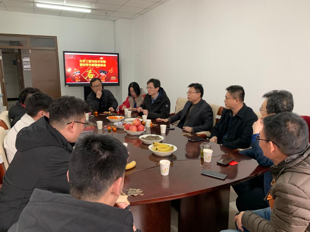 佳节倍有真情在,风月同天盼春来。2021年2月11日,化学工程与技术学院在科学楼714举行寒假留校学生春节座谈会,为留校学子送上问候祝福,送去温暖关爱。院党委书记廖海洪、院长祁贵生、院党委副书记李云、副院长胡志勇及教师代表等与学院留校学生出席座谈会。