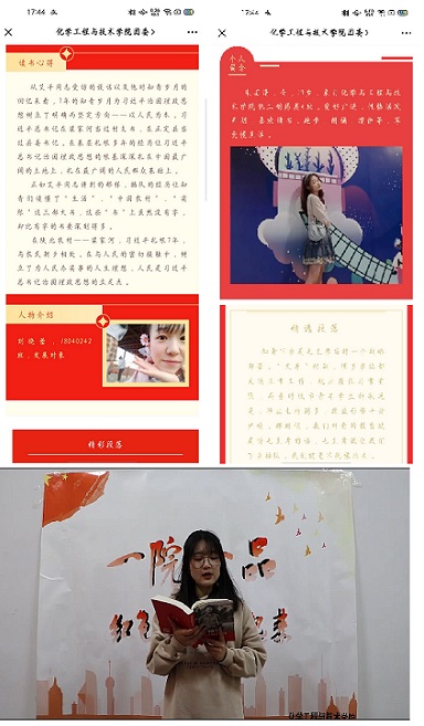 为学习贯彻习近平新时代中国特色社会主义思想以及习近平总书记关于学习“四史”的重要论述。化学工程与技术学院积极举办“学党史经典诵读·红色书籍读起来”活动,旨在让更多同学牢记党的历史,学习革命精神,增强爱国意识,筑牢理想信念之堤。