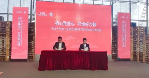 沙棘科研项目签约仪式在周庄农场隆重举行。化学工程与技术学院祁贵生院长、王海宾副院长、郭建峰老师参加活动;上生源领导团队——容邦集团总裁李相军、总裁办成员赵燕妮、章海成、张健,以及上生源数百名沙棘用户,共同见证签约时刻。