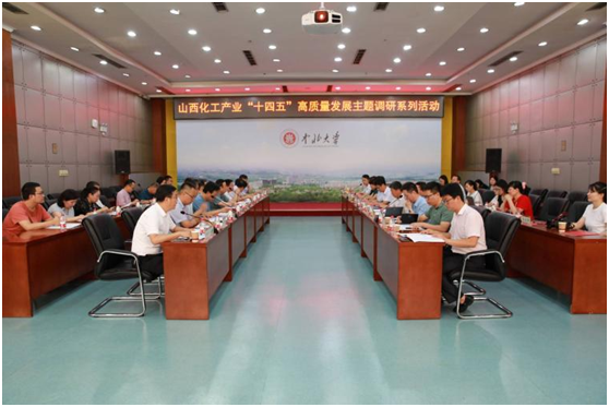 就山西化工产业“十四五”高质量发展进行调研,调研组成员有:山西省化工学会理事长郝晓刚,山西省化学会秘书长张勇,中国化工报社山西记者站站长闫俊荣,中国化工报记者、科技版编辑陈菲,山西大学副教授、山西省化学会秘书处副主任王英特及相关成员等19人。副校长苏铁熊、超重力化工过程山西省重点实验室主任刘有智、科学技术研究院常务副院长桂志国、化学工程与技术学院领导班子、相关科室和教师代表参加调研座谈会。座谈会由化学工程与技术学院副院长焦纬洲主持。