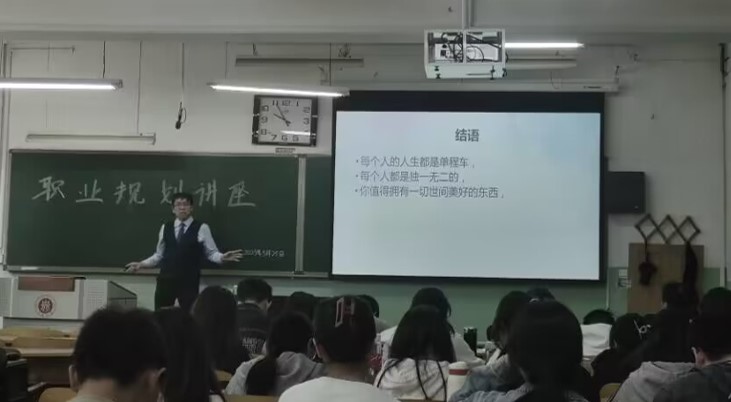 胡老师代表学院全体师生对优秀校友牛培旭的返校致以热烈欢迎。胡老师指出,职业生涯规划对大学生个人的未来职业走向和职业发展具有十分深远的影响,大学期间是职业生涯规划的黄金阶段,规划个人的职业生涯,可以使同学们明确职业目标和实施策略,避免学习的盲目性和被动性。