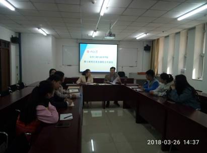 2018年3月26日下午两点半,化学工程与技术学院博士研究生党支部在科学楼206召开了民主生活会与民主评议会,化学工程与技术学院党委副书记李云莅临本次会议,会议由博士研究生党支部书记王艳红老师主持。本次的民主生活会主要围绕深入学习党的十九大精神和省委第十一届五次全会精神,牢固树立“四个意识”,坚定“四个自信”,查找纠正“四风”突出问题等方面,开展批评与自我批评。
