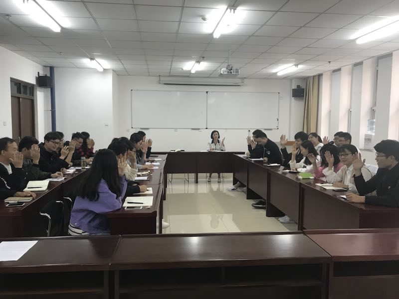 会议由宣读入党誓词、重温《党章》作为开始,贾苗苗老师强调了《党章》对于党员生活工作的指导作用,牢记入党誓词,时刻践行全心全意为人民服务的宗旨。会议上,党支部书记贾老师组织硕士生党支部进行支部委员换届,并对新产生的支部委员做了详细的工作部署,强调支部委员对于支部建设工作的重要性。贾老师向全体党员传达了《教育部办公厅关于开展高校“百个研究生样板党支部”和“百名研究生党员标兵”创建工作的通知》和《关于进一步激励广大干部新时代新担当新作为的意见》的文件精神,指导支部委员切实做好“百个研究生样板党支部”竞选工作,督促各位党员同志紧密结合“三基建设”,争做有担当有作为的新时代党员。