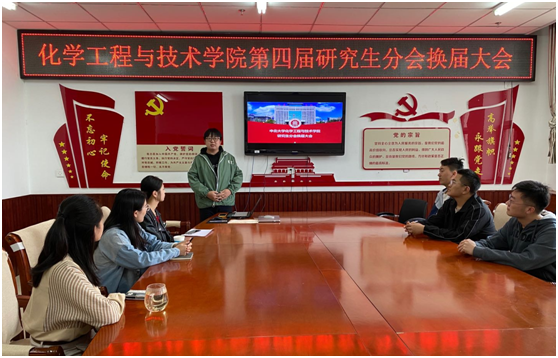 第四届研究生分会换届大会在科学楼C座705召开。本次换届会议由第三届主席高嘉明主持,参会人员有辅导员贾苗苗老师,校研究生会副主席樊璐瑶以及第四届研分会干部。