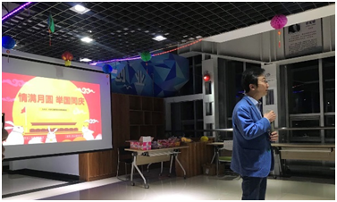 研会于9月30日晚举行了“情满月圆,举国同庆”联欢会。学院科研院长胡志勇老师,班主任王艳红、马忠平老师及全体在校研究生参加此次活动,活动由研分会主席于嘉仪主持。