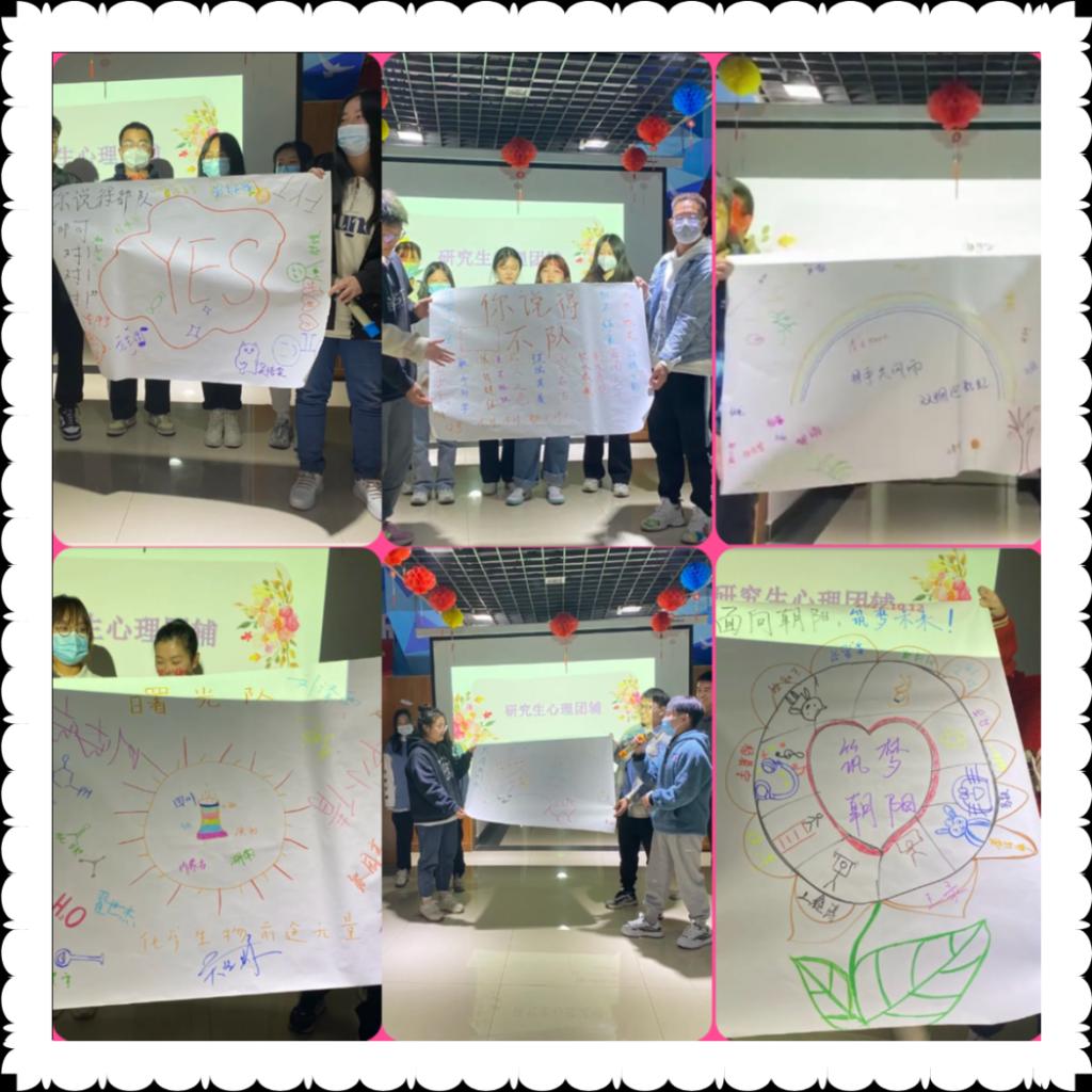 ”的小组,并且每个小组在成员的帮助下,发挥自己的想象力,完成了自己小组的专题“海报”,帮助同学们理解了团结协作的的重要性,教会学生面对问题时应该如何实现有效沟通。此次团辅活动拉进了同学们之间的距离,在团结协作中加深了同学们的信任,在体验与分享中帮助学生收获了成长与快乐!相信2022新生们将会在今后的研究生生活中,不断强化团队意识,在分享、交流与互动中携手同行,共同进步!