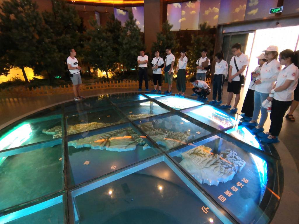 在解说员的带领下,实践队员们走进了正管,映入眼帘的是是两幅浮雕,高五米,宽二十米,分别讲述着陕西省北治沙、南治土的艰辛历程,看着浮雕一处处精美的细节,从左向右由沙漠到绿洲,榆林人民首创飞机播种,引领世界治沙走向前沿。在主题厅内队员们看到了墙壁上引人注目的榆林治沙精神:不畏艰难,勇于拼搏,矢志不渝,开拓创新。解说员说:当年的老榆林由于沙漠向南蔓延导致三次南迁,在上世纪还能排到老榆林城墙被风沙掩埋不足一米高。历经六十载风沙漫天,榆林人将毛乌素沙漠几乎消灭,堪称世界奇迹。