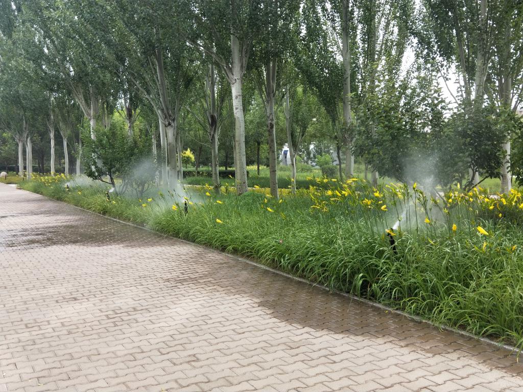 行走在鄂尔多斯大街上,康巴什新区每一条街道都存在着自动喷水装置,处处揭示着人类与科技相结合,可以毁灭森林,亦可以创造绿洲!