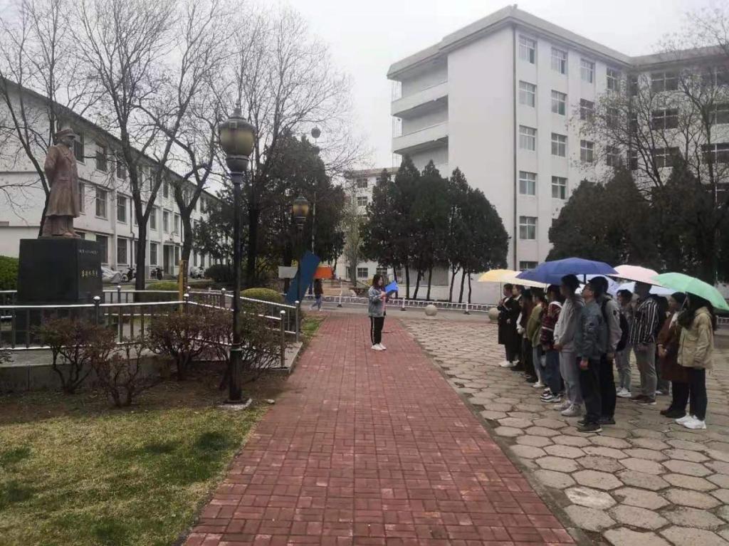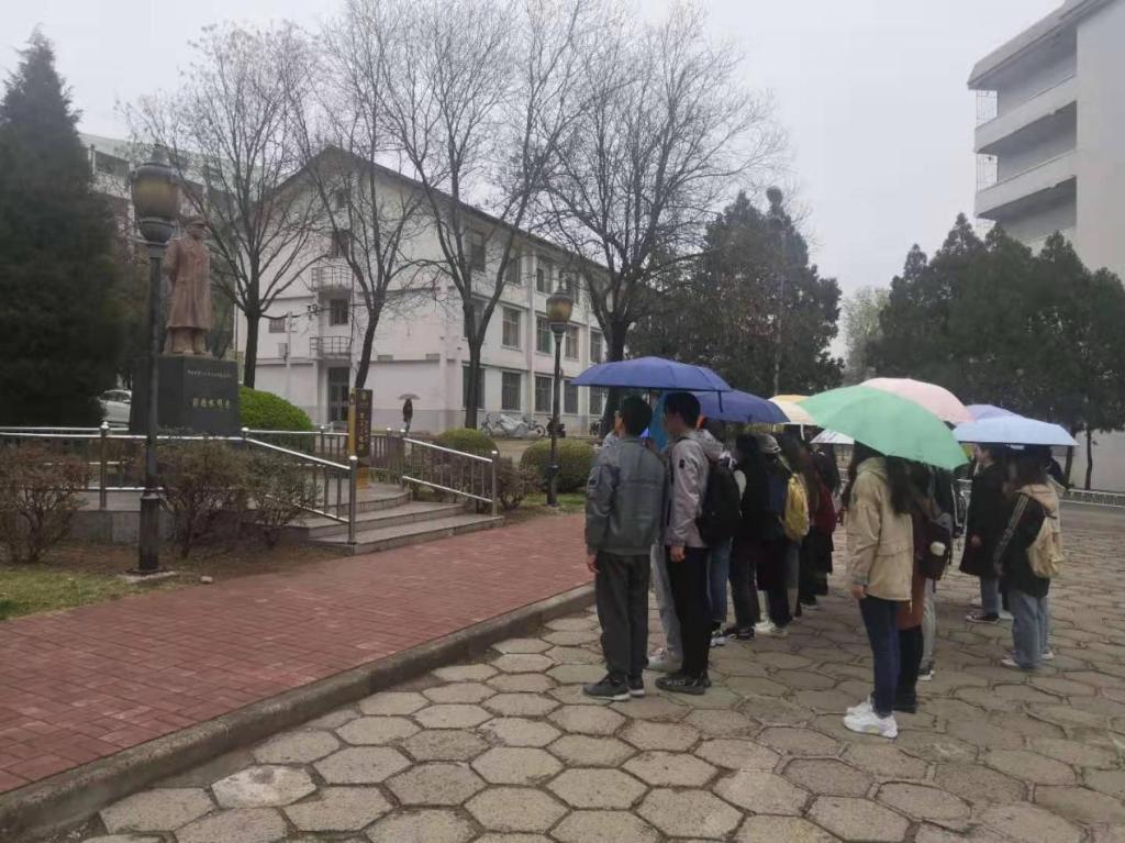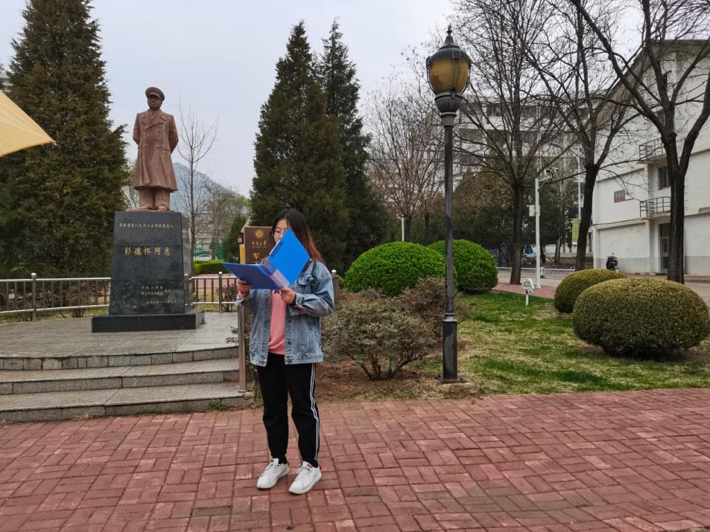 2021年4月2日下午,支部全体党员在柏林园彭德怀雕像处,深切缅怀革命先烈的丰功伟绩。首先是由郑沛同志介绍彭德怀同志和刘鼎同志的生平,随后大家谈了自己了解的彭德怀和刘鼎。活动进行到一半时,天空突然下起了蒙蒙细雨,仿佛上天也在为革命先烈默哀。讲话过后,大家一起对柏林园的雕像进行擦拭,擦去雕像表面的浮灰,亦是擦去自己心灵的尘埃。最后,由李芳同志带领大家一起重温入党誓词,誓言字字铿锵,饱含深情。
