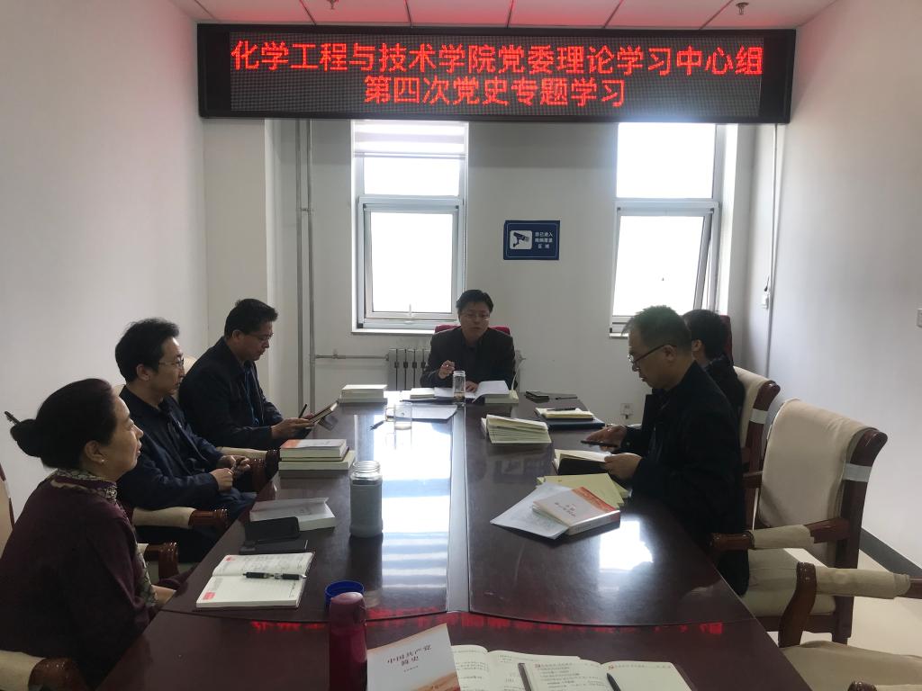 学习百年党史,感悟真理力量。2021年4月22日下午,化学工程与技术学院党委理论学习中心组在科学楼714会议室举行第四次党史专题学习会。学院领导、党委委员参加了会议,会议由院党委书记廖海洪同志主持。