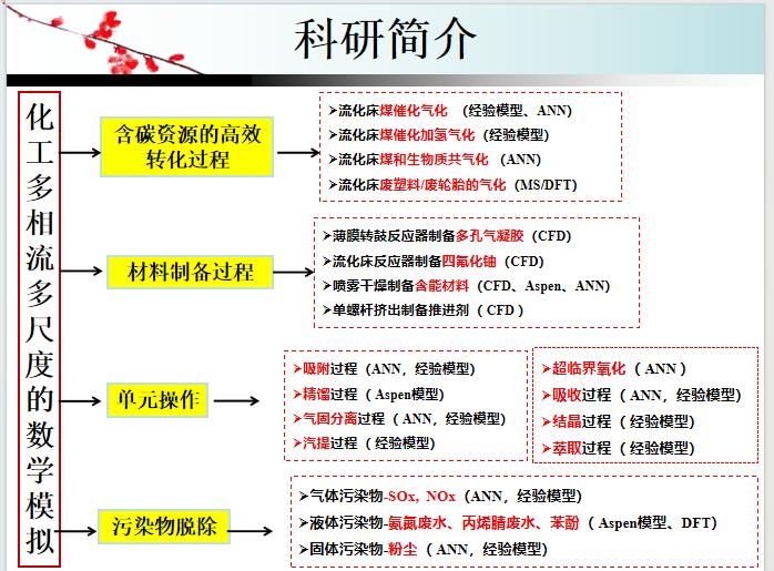 李伟伟,男,1986年生,副教授,博士,博士生导师,《燃料化学学报》和《煤炭转化》学术编辑,研究领域为化工多相流多尺度数学模拟。研究方向如图1所示,主要有(1)含碳资源的高效转化过程模拟;(2)材料制备过程模拟;(3)化工单元操作过程模拟;(4)污染物脱除过程模拟。主持或参与科研项目10余项,其中主持省部级项目7项,山西省重点研发项目子课题1项,山西省应用基础研究计划项目2项,山西省高等学校科技创新项目2项,省部共建煤基能源清洁高效利用国家重点实验室1项,煤科学与技术省部共建国家重点实验室培育基地开放基金1项。作为项目骨干参与国家基金2项和山西省重点研发计划重点项目1项。主持横向项目1项,参与横向项目3项。以第一作者和通讯作者发表Nature Communications等高水平SCI论文20余篇。担任Energy Conversion and Management、Fuel、Separation and Purification Technology和Chemical Engineering Journal等国际化工、能源和环境领域20多个期刊的审稿人。